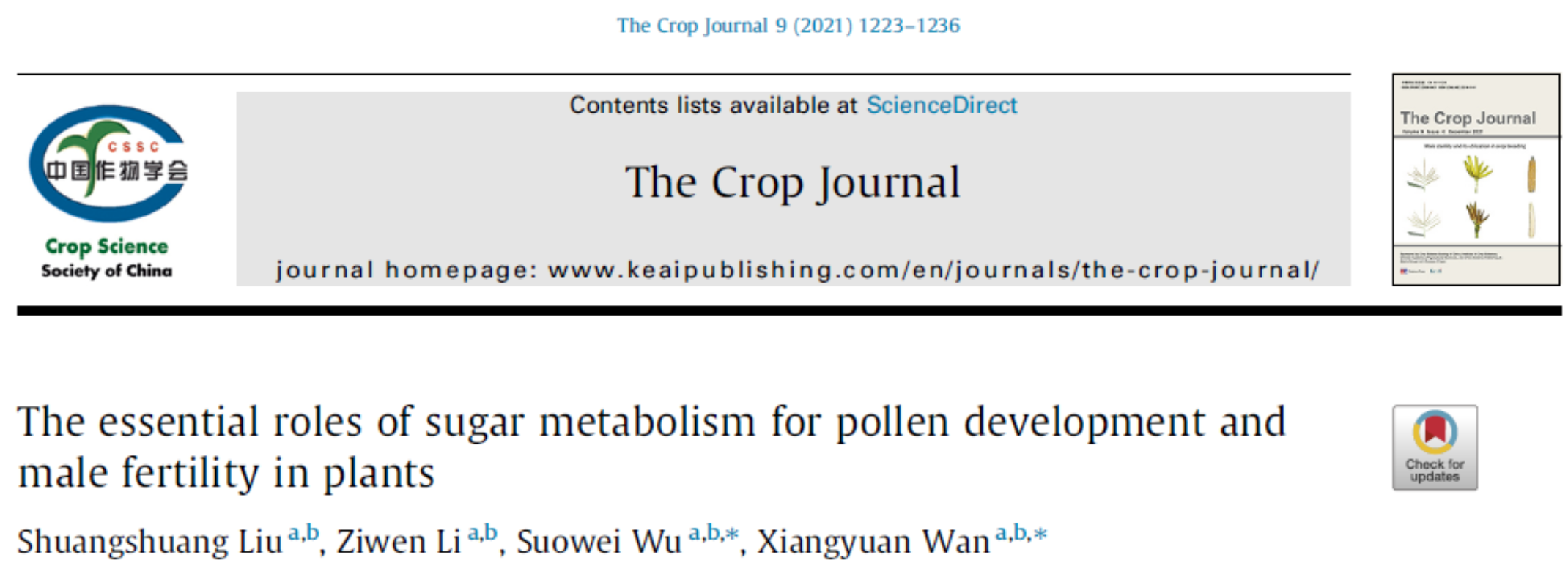2021年8月26日,欧冠官网入口万向元教授团队在The Crop Journal在线发表了题为“The Essential Roles of Sugar Metabolism for Pollen Development and Male Fertility in Plants”的综述文章,系统总结了糖代谢GMS基因在植物花粉形成与育性发育中的关键作用和分子调控网络,结合生物信息学和花药RNA-seq数据进行了玉米糖代谢GMS候选基因的预测,讨论了糖代谢GMS基因在作物杂交育种和制种中的潜在应用价值和和未来研究方向。