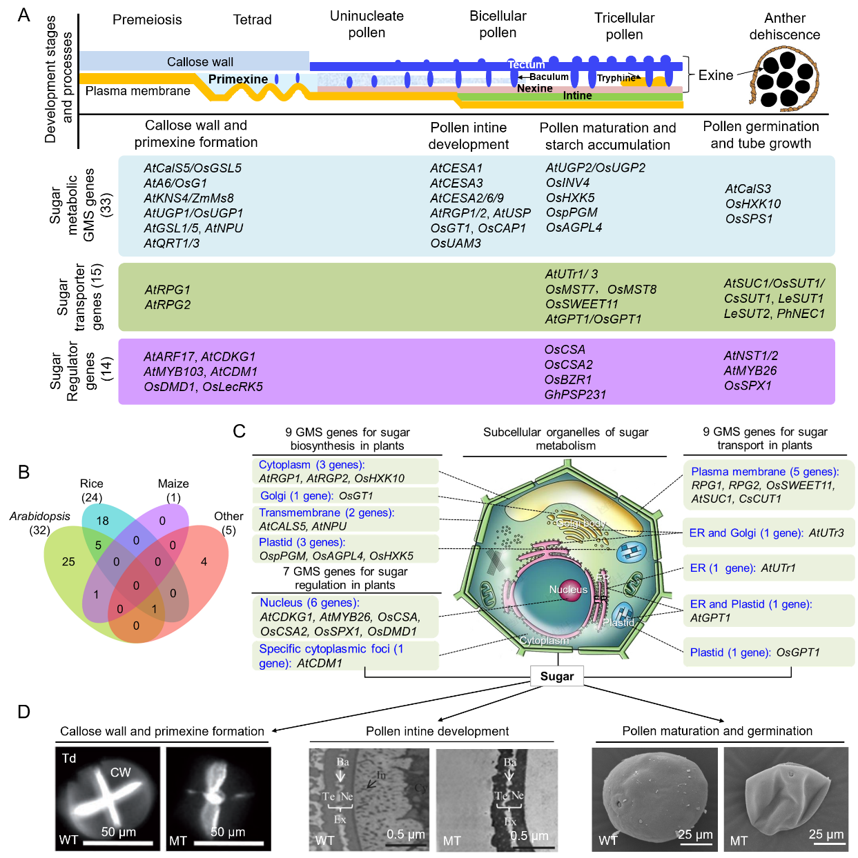 图1. 糖代谢相关雄性不育基因及其在植物花粉发育中的作用