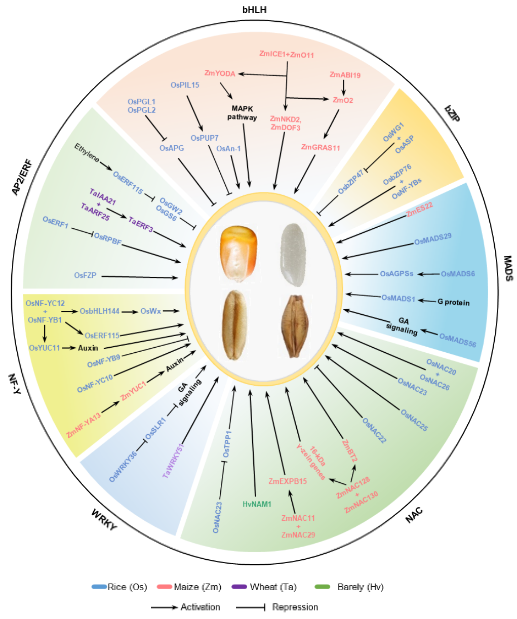 图4:7类转录因子控制玉米等禾本科作物籽粒大小和重量形成的分子途径