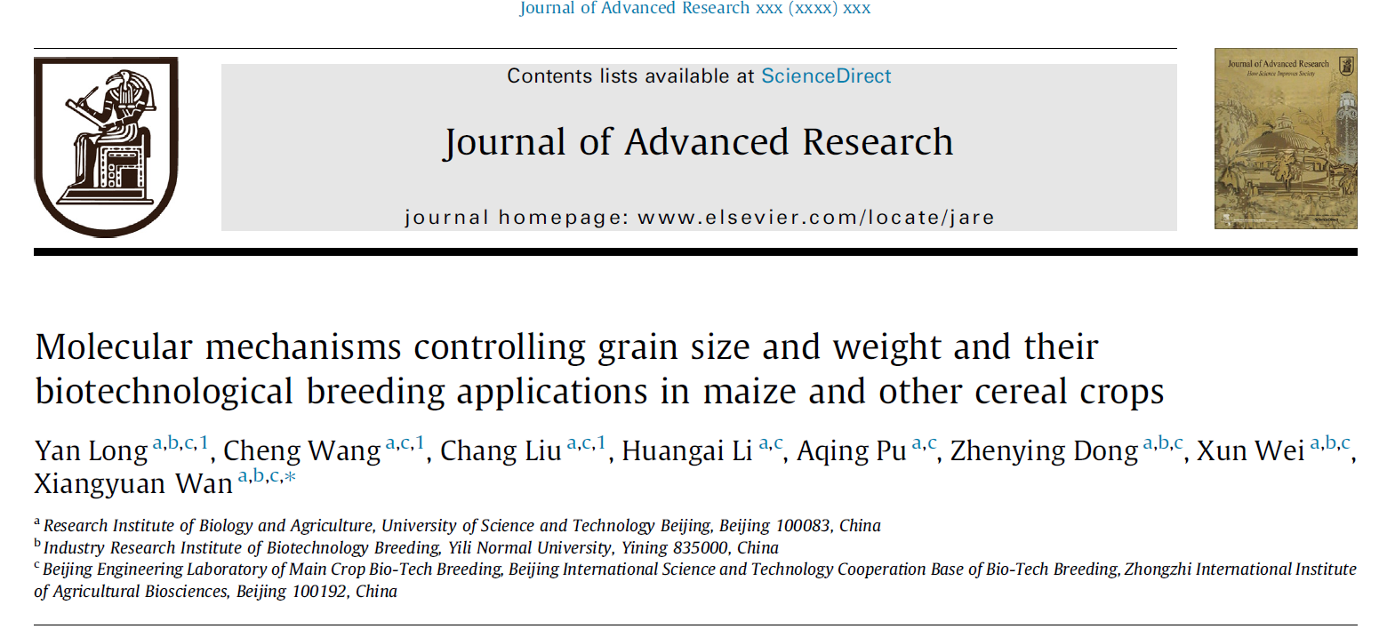 2023年9月21日,欧冠官网入口生物农业研究院、伊犁师范大学生物育种产业研究院万向元教授团队在国际综合性学术期刊 Journal of Advanced Research (IF: 10.7)上在线发表了题为 Molecular mechanisms controlling grain size and weight and their biotechnological breeding applications in maize and other cereal crops 的综述文章。文章首先利用文献计量方法对近二十年来已发表的禾本科作物籽粒大小和重量的相关文章进行了全面梳理,系统分析研究热点和发展趋势;同时根据文章的关键词全面归纳了籽粒大小和重量的遗传调控途径,并总结了主要调控途径所涉及的基因及相关分子机制。然后,提出了利用基因组内和组间遗传信息挖掘调控基因的思路。最后,给出了利用不同生物技术方法对已知基因进行操作以改良作物产量的实例。