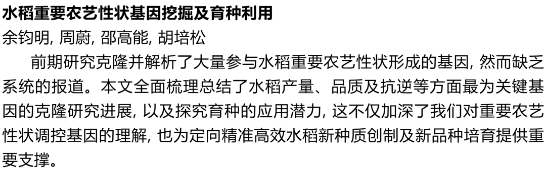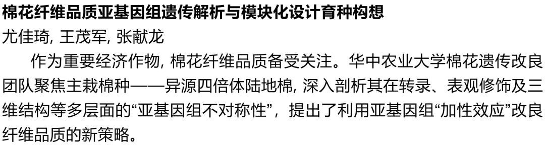 整个专辑文章紧密围绕大会主题,以生物育种技术助力作物杂种优势利用为主线,从理论机制到应用实践层层递进,为推动种业新质生产力发展、筑牢国家粮食安全根基提供学术支撑与创新思路。此外,另外5篇文章作为大会学术成果业已接收,即将发表在《科学通报》随后几期当中。上述学术成果的总结与挖掘,进一步发挥了“第一届全国作物杂种优势与生物育种学术大会”的带动辐射作用,促进了本领域的科学探索与融合创新。