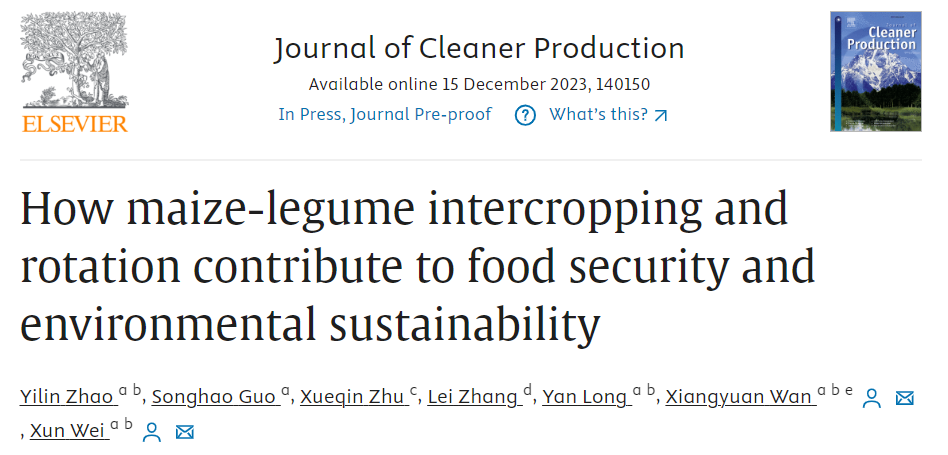 Journal of Cleaner Production | 揭示全球玉米大豆间作和轮作如何贡献粮食安全与环境可持续性