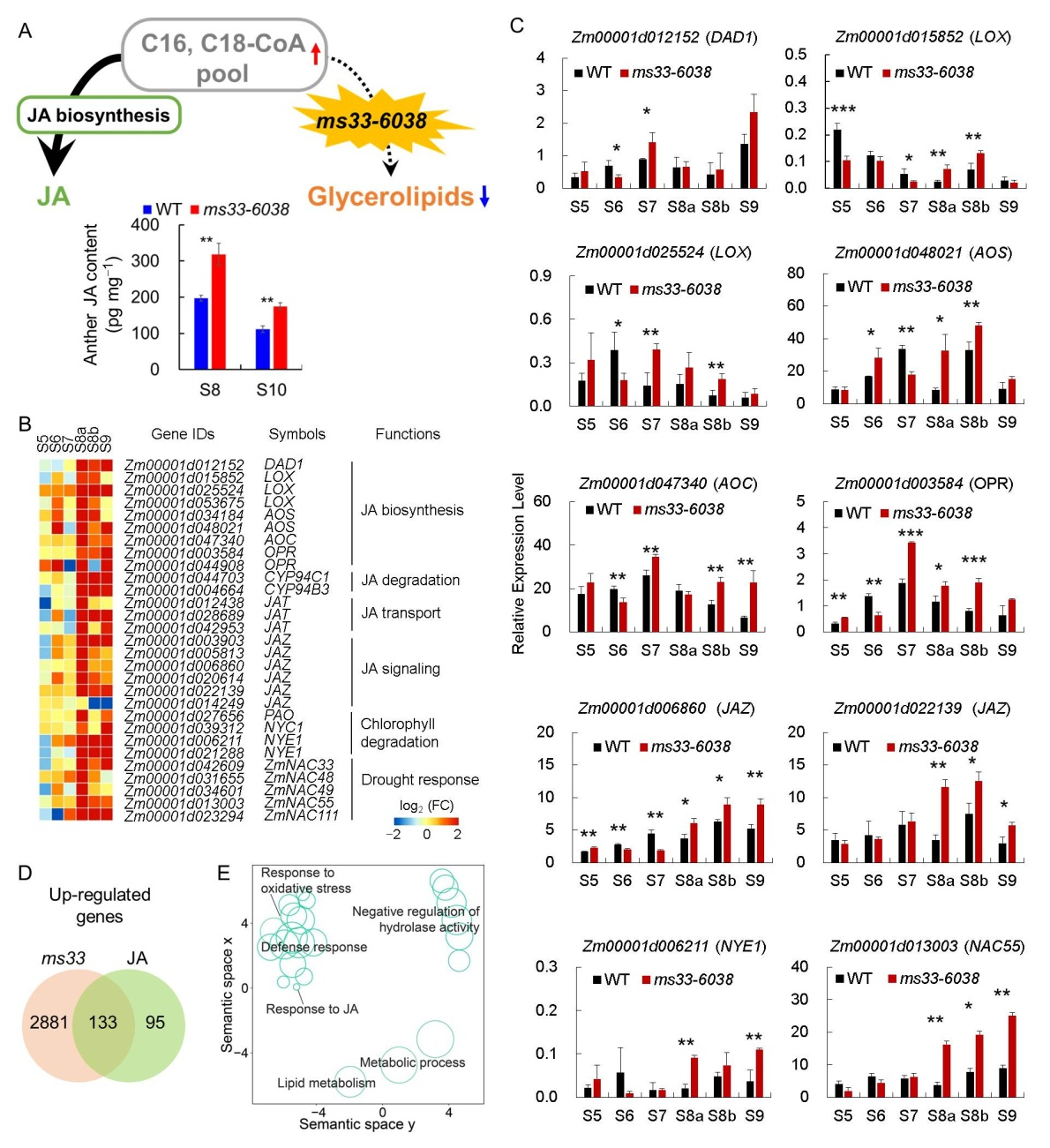 图2:ms33-6038突变体花药转录组变化与JA应答有关