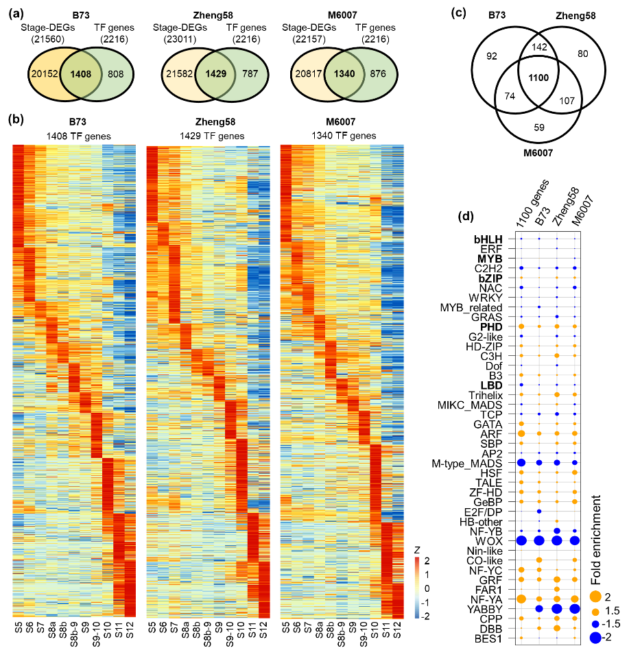 图1. 利用3个遗传背景玉米花药转录组数据分析和鉴定雄性发育相关的转录因子基因