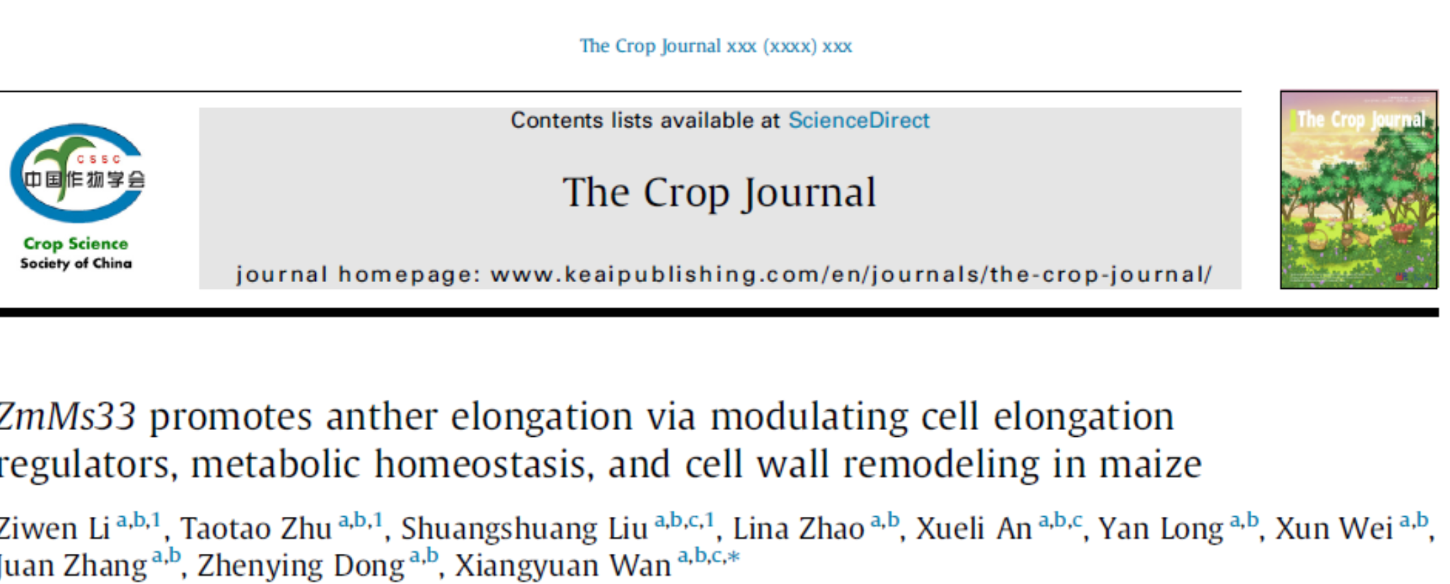 The Crop Journal │揭示ZmMs33调控花药伸长的“空转效应”