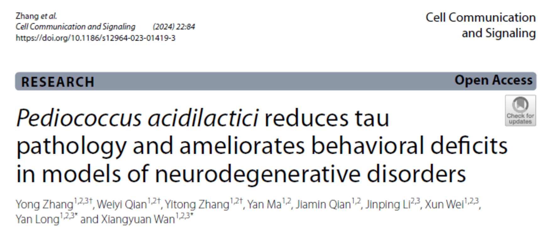 Cell Communication and Signaling | 乳酸片球菌PA降低tau蛋白毒性和改善神经退行性模型机制