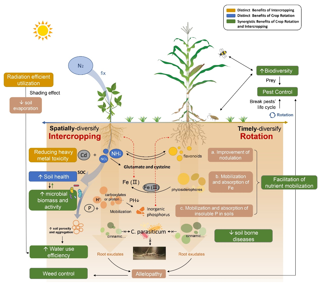 图3:玉米-豆科作物间作和轮作的关键效益机制