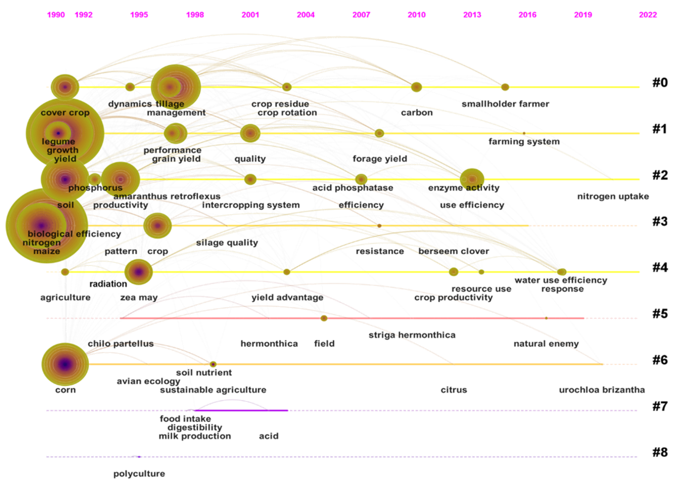 图2:1990-2022年玉米-豆科作物间作和轮作研究的热点演变及研究趋势