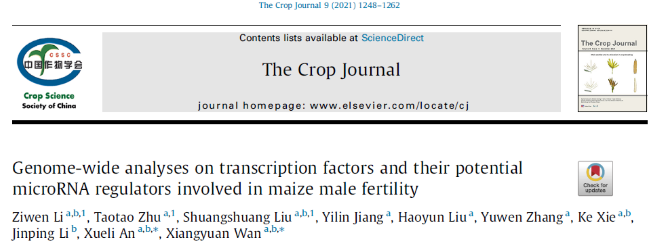 The Crop Journal │揭示microRNA调控玉米雄性发育关键转录因子