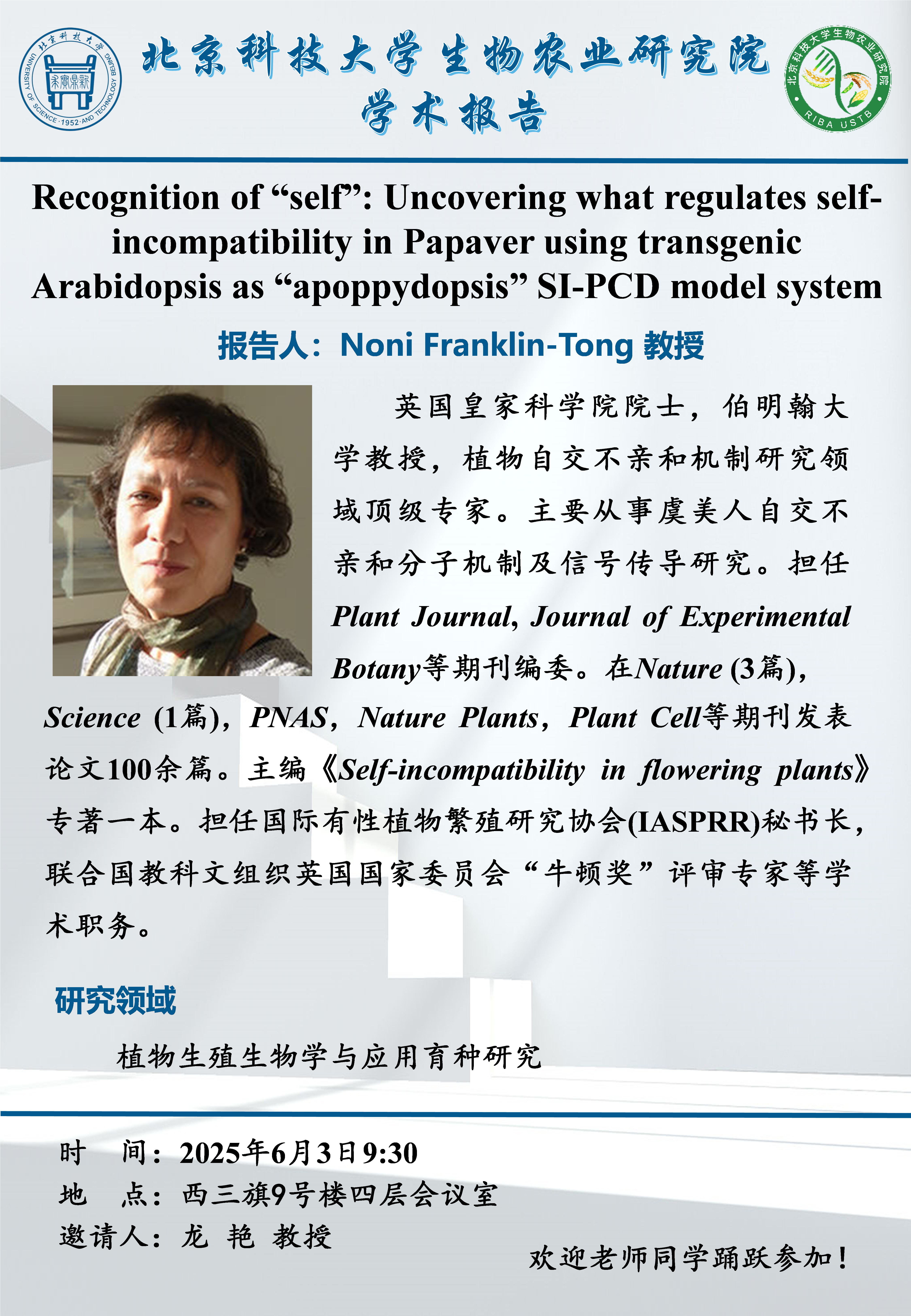 【学术报告】伯明翰大学—Noni Franklin-Tong 教授