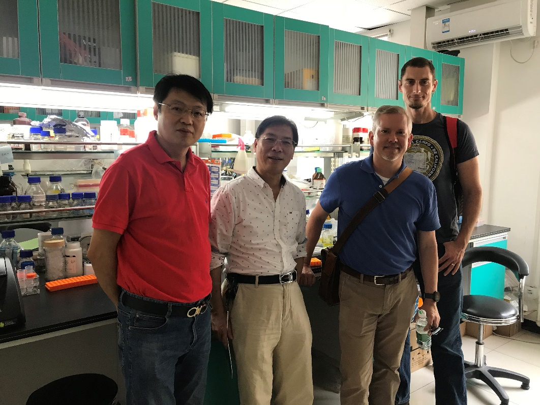 参观实验室(左起:万向元、王海洋、Matthew Hufford、Jeffrey Ross-Ibarra)